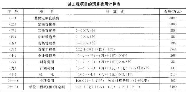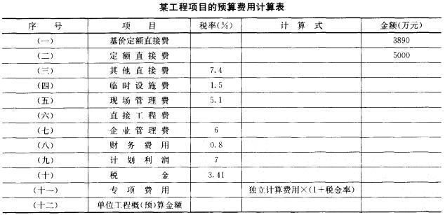 某重力式码头,根据施工图工程量计算出定额直接费为5000万元,基价定额直接费为3890万元,独立计算的费用为100万元,试计算该工程项目的预算金额并完成下...