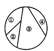 如右图所示,圆被三条线段分成四个部分。现用红、橙、黄、绿四种涂料对这四个部分上色,假设每部分必须上色,且任意相邻的两个区域不能用同一种颜色,问共有几种不同...