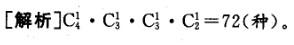 问题 如右图所示,圆被三条线段分成四个部分。现用红、橙、黄、绿四种涂料对这四个部分上色,假设每部分必须上色,且任意相邻的两个区域不能用同一种颜色,问共有几种不同的上色方法?( ) A. 64 种 B. 72 种 C. 80 种 D. 96 种