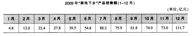 “家电下乡”产品销售额增幅最大的是几月份?A.2 B.3 C .7 D.12