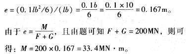解析 根据《建筑地基基础设计规范》(GB 50007—2002)第8. 4. 2条,由题可知,偏心距应满足条件:e≤0.1W/A,则可得: