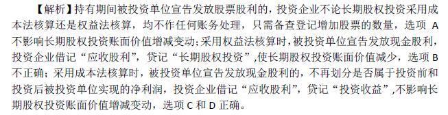 选项 A.采用权益法核算的长期股权投资,持有期间被投资单位宣告分派股票股利 B.采用权益法核算的长期股权投资,持有期间被投资单位宣告分派现金股利 C.采用成本法核算的长期股权投资,持有期间被投资单位宣告分派投资以前年度现金股利 D.采用成本法核算的长期股权投资,持有期间被投资单位宣告分派投资以后年度现金股利