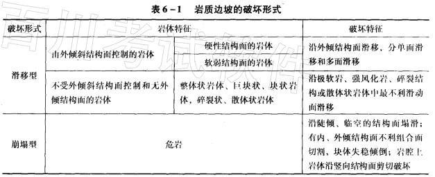 解析 岩质边坡崩塌型破坏的破坏特征如表6 - 1所示。