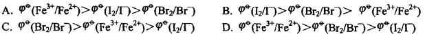 试验证实下列反应在标准条件下均按正方向进行( )。由此判断下列标准电极电势代数值从大到小的排列顺序正确的是( )。