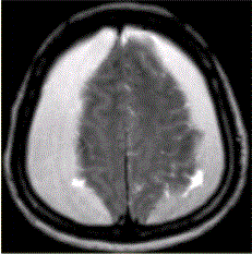 男性,55岁。突发昏迷,MRI表现如下图,可能的诊断是A.硬膜下血肿B.正常C.硬膜外血肿D.脑挫裂伤E.脑脓肿