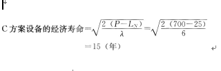解析 因此,应选择得分最高的A方案。 问题2: B方案的年度费用: 60+600÷(P/A,8%,18)=60+600÷9.372 =124.02(万元) A方案的年费用最小,因此,应选择A方案。 问题3: B方案的年度费用: 124.02+100×(P/F,8%,18)-20×(P/F,8%,18)÷(P/A,8%,18) =124.02+100×0.463÷9.372-20×0.250+9.372=128.43(万元) B方案的年费用最小,因此,应选择B方案。 问题4: