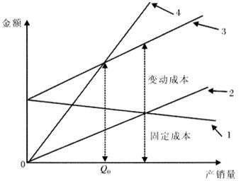 解析 在图中,线1为固定成本曲线。故选A选项。线2为变动成本曲线,线3为总成本曲线,线4为销售收入线。