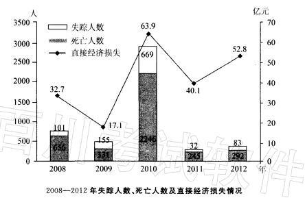 解析 2012年死亡失踪人数同比增长率为(292 + 83 —245 —32) ÷ (245 + 32)×