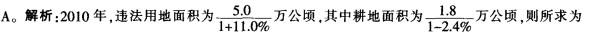问题 根据以下资料,回答问题。 2011年,国土资源系统进一步完善“全国覆盖、全程监管、科技支撑、执法督察、社会监督” 的执法监管体系。 全年发现违法用地行为7.0万件,涉及土地5.0万公顷(耕地1.8万公顷),同比分别上升 5.8%、11.0%(耕地下降2.4%)。立案查处违法用地案件4.2万件,涉及土地4.4万公顷(耕地 1.5万公顷),同比分别上升2.5%、11.4%(耕地下降5.7%)。依法拆除违法构建物1289.8万平 方米,收缴土地3791.2公顷(耕地1064.7公顷),罚没款26.5亿元。 2010年,违法用地中非耕地面积约为()万公顷。 A.2.7 B.1.8 C.4.5 D.1.9