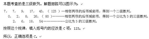 问题 7,7,9,17,43,( ) A.119 B.117 C.123 D.121
