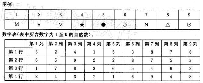 根据图例和数字表回答下列各题:数字表中第1行所缺失的数字对应的符号是( )。A. ▽△ B.◇▽ C. N● D.M★