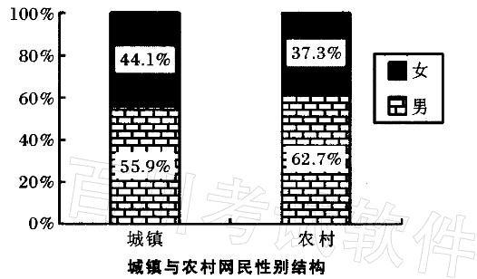 以下判断正确的是( )。A.在农村41-50岁的网民男女比例大致相同B.农村女性网民的比例远低于男性的原因是农村女性的受教育程度较低C...