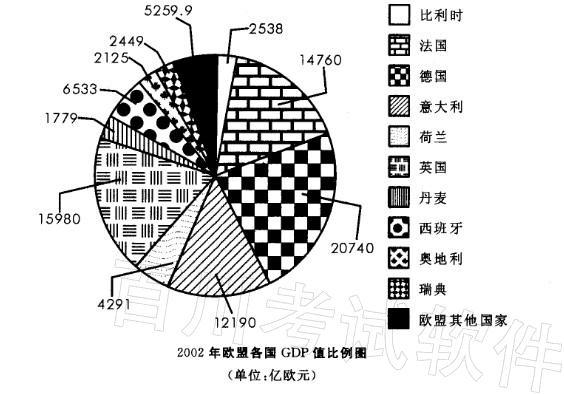 根据2002年欧盟各国GDP值比例图,西班牙的排名为( )。A.第5 B.第6 C.第7 D.第8