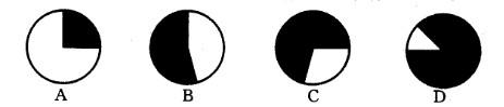 问题 2007年我国粮食种植面积10553万公顷,比上年增加70万公顷;棉花种植面积559万公顷,增加7 万公顷;油料种植面积1094万公顷,减少60万公顷;糖料种植面积167万公顷,增加10万公顷。 全年粮食产量50150万吨,比上年增加350万吨,增产0. 7%,其中,夏粮产量11534万吨,增产1. 3%;早稻产量3196万吨,增产0. 3%;秋粮产量35420万吨,增产0. 6%。 全年棉花产量760万吨,比上年增产1.3%。油料产量2461万吨,减产4.2%。糖料产量11110万吨,增产11.4%。烤烟产量239万吨,减产3.9%。茶叶产量114万吨,增产10.9%。 全年肉类总产量6800万吨,比上年减少3.5%。其中,猪肉减少9. 2%;牛、羊肉分别增长6.1%和 5.8%。全年水产品产量4737万吨,增长3.3%。全年木材产量6974万立方米,增长5. 5%。 下列阴影部分最能体现2006年秋粮产量占当年粮食产量比重的是()。