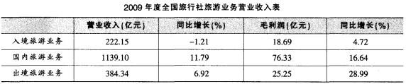 2009年度全国旅行社营业收入为1806.53亿元,同比增长8.64%;毛利润总额为134.36亿元,毛利率为了7.44%;净利润总额为11.48亿元,净...