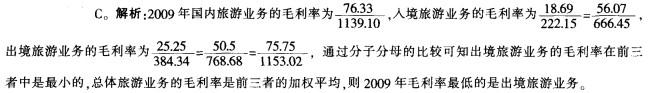 问题 2009年度全国旅行社营业收入为1806.53亿元,同比增长8.64%;毛利润总额为134.36亿元,毛利率为了7.44%;净利润总额为11.48亿元,净利率为0.64%。2009年度全国旅行社的旅游业务营业收人为1745.59亿元,同比增长8.87%;旅游业务毛利润为120.27亿元,旅游业务毛利率6.89%;实缴税金为12.69亿元,同比增长12.37%;外汇结 汇10.51亿美元,同比减少11.24%;全年促销费支出为6.76亿元,同比增长13.87%。 下列各项中,2009年毛利率最低的是()。 A.国内旅游业务 B.入境旅游业务 C.出境旅游业务 D.总体旅游业务