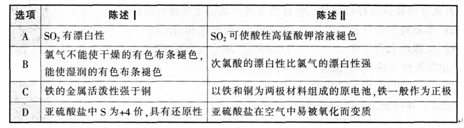 下列选项中的陈述I、Ⅱ都正确并且有因果关系的是(  )。