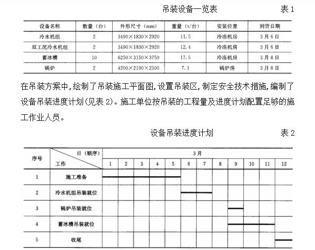 某建筑空调工程中的冷热源主要设备由某施工单位吊装就位,设备需吊装到地下一层(-7.5m),再牵引至冷冻机房和锅炉房就位。施工单位依据设备一览表(见表1)及...