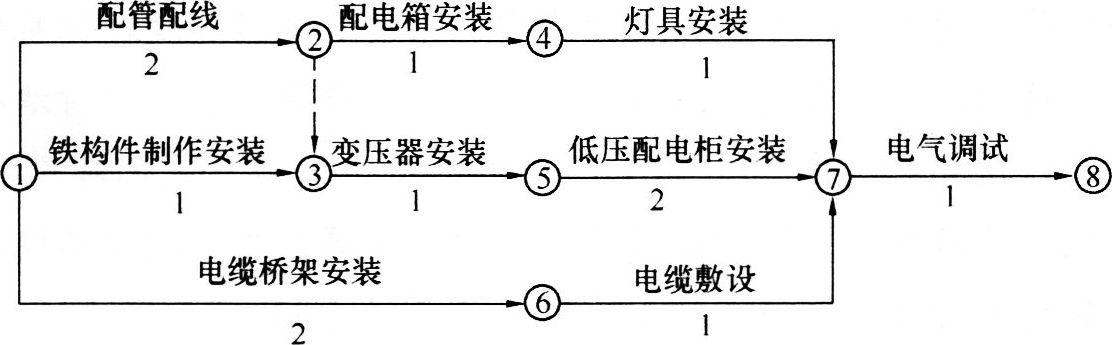【背景资料】 某安装公司中标了某贸易中心大楼的电气安装工程,该工程采用以人工费为取费基数的全费用综合单价计价。 合同签订后,安装公司编制了施工进度网络...