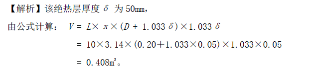 某工艺管道绝热安装工程,管道外径为 D = 200mm,绝热层厚度δ=50mm,管道长度 L =10m,该管道绝热工程量为( )m3。A.0.177 ...