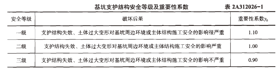 问题 基坑侧壁安全等级为二级时,其采用的相对应的重要系数是( )。