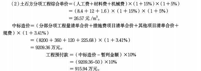 问题 背景 某酒店工程,建筑面积28700m2,地下1 层,地上15 层,现浇钢筋混凝土框架结构。建设单位依法进行招标,投标报价执行《建设工程工程量清单计价规范》GB 50500—2013。共有甲、乙、丙等8 家单位参加了工程投标。经过公开开标、评标,最后确定甲施工单位中标。建设单位与甲施工单位按照《建设工程施工合同(示范文本)》GF—2017—0201 签订了施工总承包合同。合同部分条款约定如下:(1)本工程合同工期549d;(2)本工程采取综合单价计价模式;(3)包括安全文明施工费的措施费包干使用;(4)因建设单位责任引起的工程实体设计变更发生的费用予以调整;(5)工程预付款比例为10%。工程投标及施工过程中,发生了下列事件:事件一:在投标过程中,乙施工单位在自行投标总价基础上下浮5% 进行报价。评标小组经认真核算,认为乙施工单位报价中的部分费用不符合《建设工程工程量清单计价规范》GB 50500—2013 中不可作为竞争性费用条款的规定,给予废标处理。事件二:甲施工单位投标报价书情况是:土石方工程量650m3,定额单价人工费8.40元/m3、材料费12.00 元/m3、机械费1.60 元/m3。分部分项工程量清单合价为8200 万元,措施费项目清单合价为360 万元,暂列金额为50 万元,其他项目清单合价120 万元,总包服务费为30 万元,企业管理费15%,利润为5%,规费为225.68 万元,税金为3.41%。事件三:甲施工单位与建设单位签订施工总承包合同后,按照《建设工程项目管理规范》GB/T 50326—2017 进行了合同管理工作。事件四:甲施工单位加强对劳务分包单位的日常管理,坚持开展劳务实名制管理工作。事件五:在基坑施工中,由于正值雨期,施工现场的排水费用比中标的费用超出3 万元。甲施工单位及时向建设单位提出了索赔要求,建设单位不予支持。对此,甲施工单位向建设单位提交了正式的书面索赔报告。 2.问题(1)事件一中,评标小组的做法是否正确?并指出不可作为竞争性费用项目的分别是什么?(2)事件二中,甲施工单位所报的土石方分项工程综合单价是多少元/m3?中标造价是多少万元?工程预付款金额是多少万元?(均需列式计算,答案保留小数点后两位)(3)事件三中,甲施工单位合同管理工作中,应执行哪些程序?(4)事件四中,按照劳务实名制管理要求,在劳务分包单位进场时,甲施工单位应要求劳务分包单位提交哪些资料进行备案?(5)事件五中,甲施工单位的索赔是否成立?在建设工程施工过程中,施工索赔的起因都有哪些(至少列出四项)?