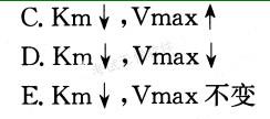 解析 反竟争性抑制剂:仅与酶和底物形成的中间产物结合,使中间产物的量下降。Vmax、Km均降低。