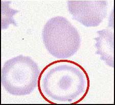 图所示红细胞是 ( )A、镰形红细胞B、泪滴形红细胞C、口形红细胞D、球形红细胞E、靶形红细胞