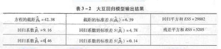 为确定大豆的价格(y)与大豆的产量(x1)及玉米的价格(x2)之间的关系,某大豆厂商随机调查了20个月的月度平均数据,根据有关数据进行回归分析,得到表3-...