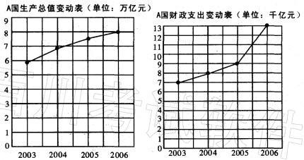 解析 根据图中的数据,2003年大约为5.8万亿元,2006年A国生产总值大约为7. 9万亿元,增加了,结合选项,答案选C。