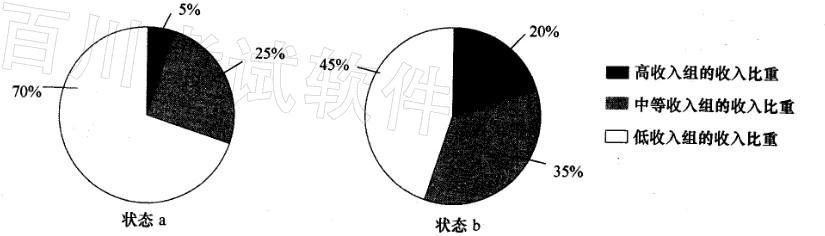 按收入高低把总人口等分为高、中、低三组,下图所示为各组收入占总收入比重的两种不同状态。下列做法有利于由状态a向状态b转变的是( )。 ①加...
