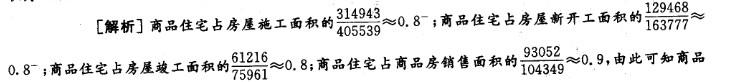 解析 住宅所占比重最高的是商品房销售面积,故本題选D。