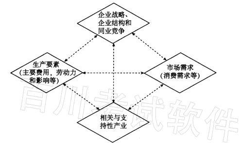 【材料一】优势产业的培育,既与图中四种因素的基本状况密切相关,又与这些因素能否相互促进有关。这一分析框架用图形表示如同钻石的顶面,因此被形象地称为“钻石模...