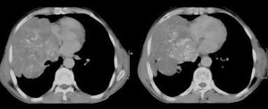 问题 50岁,男性,右侧胸痛、咳嗽、咯血3个月,请结合图像选择最可能的诊断 ( )