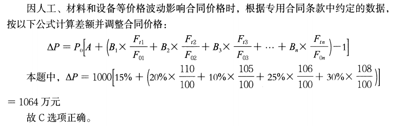某工程约定当价格波动超过一定范围时根据价格调整公式调整合同价。已知不调整部分占合同总价的15%,可以调整部分有人工费、运输费、钢筋价格、混凝土价格,其占合...