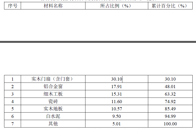 解析 A 类材料:实木门扇(含门套)、铝合金窗、细木工板、瓷砖B 类材料:实木地板。