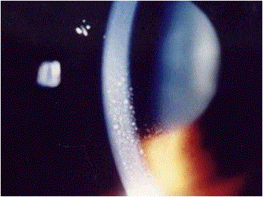 患者,男性,40岁,右眼红痛伴视力下降3天。检查右眼视力0.2,结膜混合性充血,角膜后沉着物阳性,房水闪辉阳性,瞳孔小(如图)。目前最主要的治疗措施是( ...