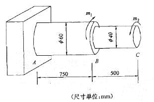 变截面钢轴如图所示。已知m1=2kN ? m,m2= 1kN . m,G=80GPa,则此轴最大的相对扭转角φmax等于: A. 0. 42° B....