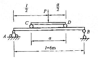 问题 当力P直接作用在简支梁AB的中点时,梁内的σmax超过许用应力值30%。为了消除过载现象,配置了如图所示的辅助梁CD,则此辅助梁的跨度a的长度应为: A. 1. 385m B.2. 77m C. 5. 54m D. 3m