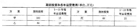 某项目有三个产出相同的方案,方案寿命期均为10年,期初投资和各年运营费用如表所示,设基准折现率为7%,已知(P/A,7%,10) = 7.204。则方案优...