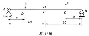 解析 此梁的受力情况对于跨中点C为反对称,故截面C处的挠度为零