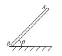 问题 匀质细直杆AB长为l,B端与光滑水平面接触如图示,当AB杆与水平面成θ角时无初速下落,到全部着地时,则B点向左移动的距离为( )。