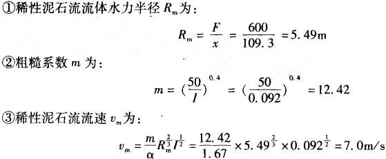 解析 按北京地区公式计算泥石流流速如下: