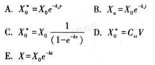 解析 本题主要考查单室模型静脉注射和静脉滴注的药动学方程和药动学参数的计算。包括单室模型静脉注射体内药量随时间变化关系式和首剂量与维持量的关系式,静脉滴注、静脉注射联合用药时首剂量(负荷剂量)的计算公式。故本组题答案应选择ECD。