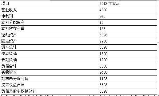 相关内容:公司,2012年,财务,报表,数据,单位,万元,假设,资产,经营性,流动,负债,经营,营业,收入