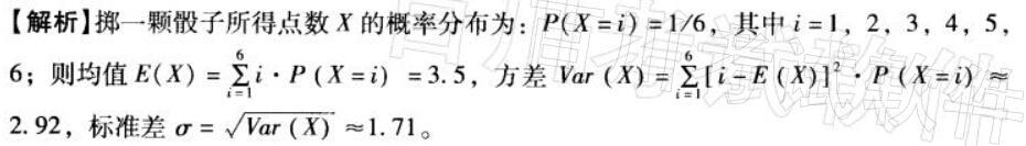掷一颗骰子所得点数X的分布中,以下说法不正确的是( )。A.均值为3 B.均值为3.5 C.方差为2. 92 D.标准差为1.71