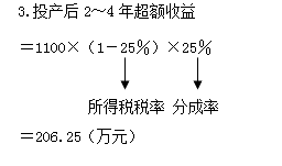 解析  1.确定收益期:4年   2.专利技术投产后第1年收益(超额收益)   (1)收入=12×150/1.17=1538.46(万元)   (2)城建税+教育附加费=[(12×150/1.17)×17%-6×12]×(7%+3%)=18.95 (万元)   (3)利润总额=1538.46-80×12-18.95=559.51 (万元)   (4)净利润=559.51×(1-25%)=419.63 (万元)   (5)专利技术超额收益=419.63×25%=104.91 (万元)