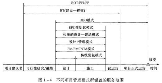 解析 工程项目管理所涵盖的服务范围大致如图1-4所示。