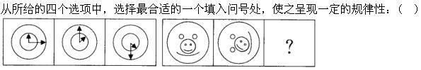 解析 第一组图形中,外圈长箭头依次逆时针旋转90°、180°,内圈短箭头依次顺时针旋转45°、90°得到下一个图形。第二组图形同此规律,外部大图形依次逆时针旋转90°、180°,内部小图形依次顺时针旋转45°、90°得到下一个图形。选择D项。
