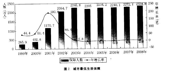 2008年各级财政共支出城市低保资金393. 4亿元,比上年增长41. 8%,保障了2330多万城镇贫困人口的基本生活。得到最低生活保障人员中:在职人员8...